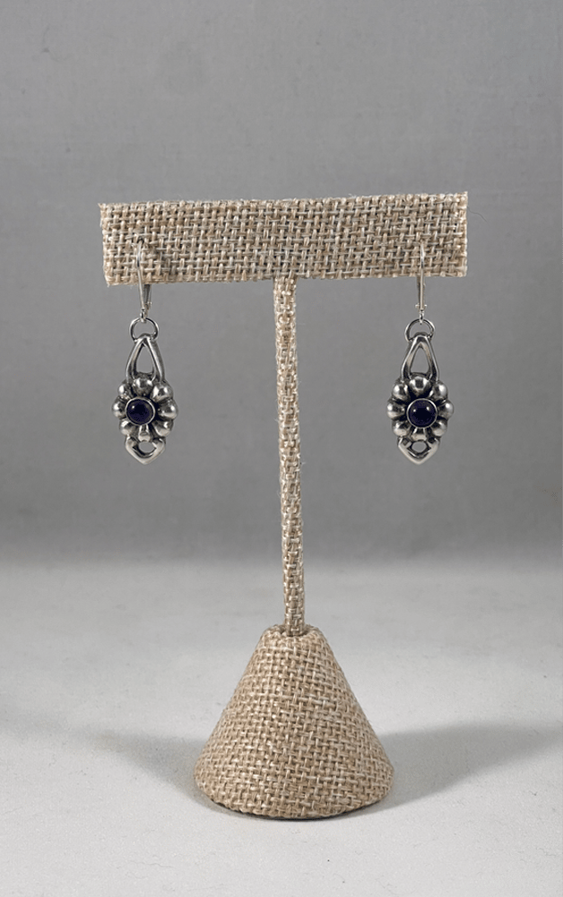 Handcrafted in sterling silver, these botanical inspired earrings bloom with a 5mm Amethyst gemstone, known for its calming and balancing energy. The intricate silverwork forms a floral frame, bring ut the deep violet hue of the stone.