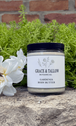 Ingredients: Tallow infused Gardenia, Coconut Butter, Shea Butter, Arrowroot, Gardenia Essential Oil, Vitamin E, Frankincense Essential Oil, Calendula Essential Oil.